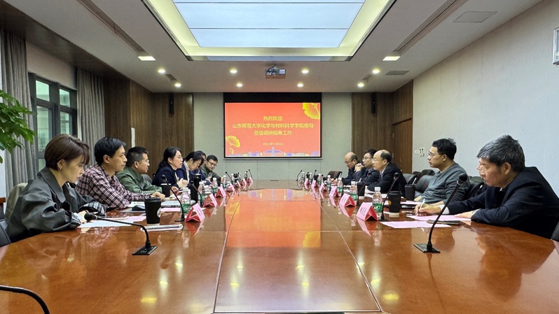 山东师范大学化学化工与材料科学公司党委副书记魏宁,副经理崔官伟、耿琰,经理助理王栩,学术副经理高雯和学院办公室负责人刘振华来院调研。公司副经理俞寿云、史壮志、徐铮,经理助理宋友,生命分析化学国家重点实验室主任鞠熀先和党政办公室主任彭峰参加了调研座谈。