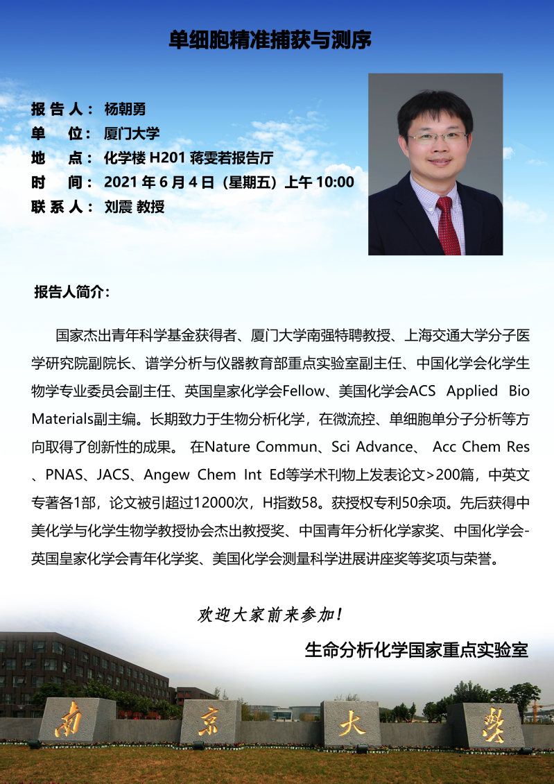6月4日杨朝勇教授学术报告:单细胞精准捕获与测序