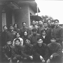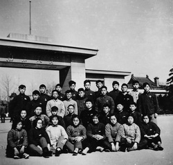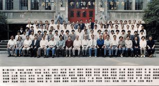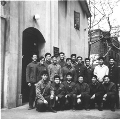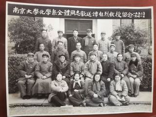 1980年元旦,化学系系主任等和78届研究生欢送薛奇等出国留学在校门口留影