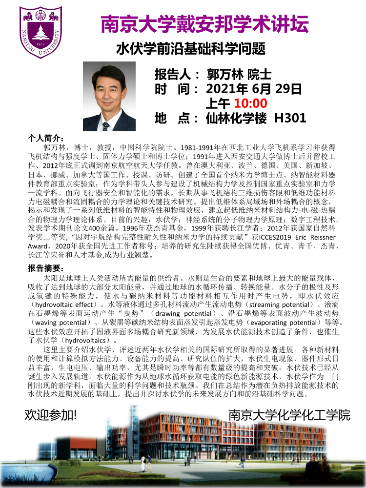 6月29日戴安邦学术讲坛-郭万林院士:水伏学前沿基础科学问题