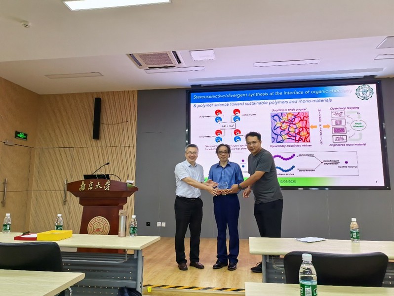 2025年10月9日下午,美国科罗拉多州立大学Eugene Y.-X. Chen教授应邀作为betway西汉姆联化学化工学院“名师讲坛”嘉宾,为学院师生作了题为“Stereo-selective/divergent Synthesis at the Interface of Organic chemistry and Polymer Science Toward Sustainable Polymers and Mono-Materials”的精彩报告。本次报告由化学化工学院副经理史壮志教授主持。史壮志教授介绍了Eugene Y.-X. Chen教授的简历和成就,并向Eugene Y.-X. Chen教授颁发了“名师讲坛”纪念铭牌。公司多位教师、员工参加了报告会。