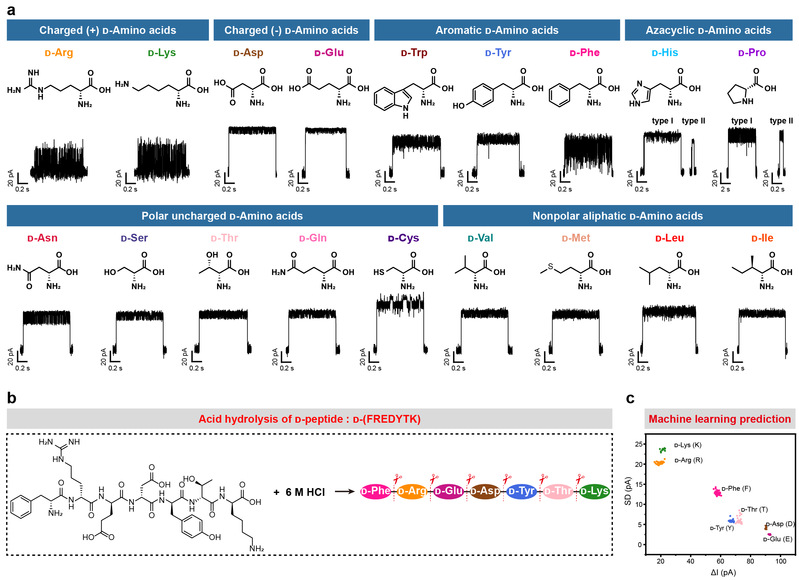 图1: MspA-NTA-Ni纳米孔同时分辨所有D-氨基酸及D-肽组分鉴定
