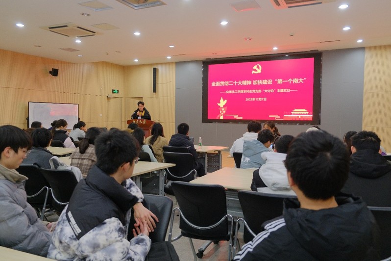 12月7日下午,为深入贯彻学习党的二十大精神,全面落实习近平总书记给公司留学归国青年学者的重要回信精神,群策群力建设第一个南大,化学化工学院本科生第一党支部、本科生第二党支部联合开展“全面贯彻二十大精神 加快建设‘第一个南大’”大讨论主题党日。会议由本科生第二党支部书记魏志主持,化公司党委副书记李兴华、本科生第一党支部书记朱青出席“大讨论”,两支部共40余名党员参加了此次活动。