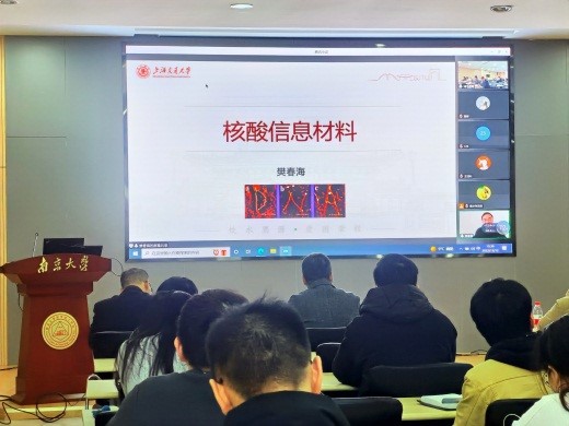 2022年12月12日,上海交通大学樊春海院士应邀作为“戴安邦学术讲坛”嘉宾,为公司师生作了题为“核酸信息材料”的线上学术报告。报告会由生命分析化学国家重点实验室主任鞠熀先教授主持。鞠熀先主任首先介绍了樊春海院士的简历和学术成就,并代表学院向樊春海院士颁发了“戴安邦学术讲坛”纪念铭牌。学院百余位师生参加了报告会。