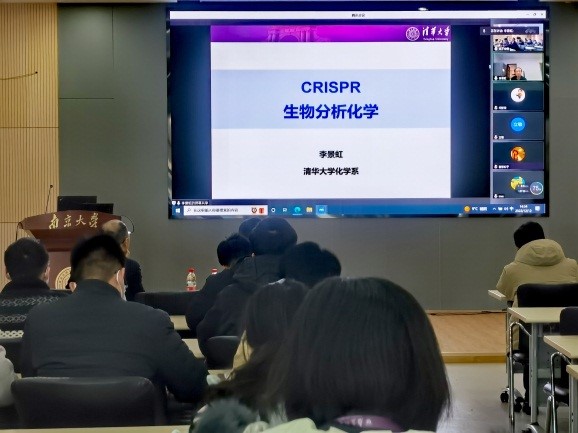 CRISPR技术是在20世纪90年代初被发现的基因编辑技术,2012年因Emmanuelle Charpentier与Jennifer A. Doudna 等人开发了一种CRISPR/Cas9的基因组编辑技术而风靡全球,被誉为21世纪最具颠覆性的一项新兴科技,于2020 年获诺贝尔化学奖。李景虹院士于2016年将CRISPR技术用于生物传感,发展了CRISPR核酸成像与单细胞分析技术,提出NTEXPAR、CasPLA等成像方法。他在报告中介绍了CRISPR生物分析化学的优势与研究思路,以其在“CRISPR成像技术”与“CRISPR核酸诊断”方面的研究成果,讲解了该技术在分子识别、信号转换与信号放大等方面的应用原理,并对CRISPR技术助力单细胞生物学与精准医学的前景作了展望。报告结束后,与会师生踊跃提问,李景虹院士做了详细解答。