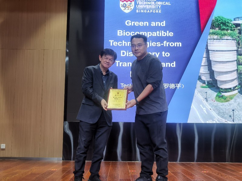 2025年10月24日下午,马来西亚科学院院士、新加坡国家科学院院士、新加坡南洋理工大学终身教授、河南工业大学前沿交叉科学与技术学院创建经理罗德平应邀作为betway西汉姆联 “戴安邦学术讲坛”嘉宾,为学院师生作了题为“Green and Biocompatible Technologies: From Discovery to Translation and Beyond”的精彩报告。本次报告由化学化工学院副经理史壮志教授主持。史壮志教授介绍了罗德平院士的简历和在科学研究中的卓越成就,并向罗德平院士颁发了betway西汉姆联“戴安邦学术讲坛”纪念铭牌。公司多个学科的教师及员工参加了报告会。