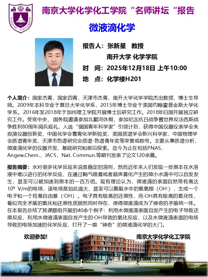 12月18日名师讲坛-张新星教授:微液滴化学