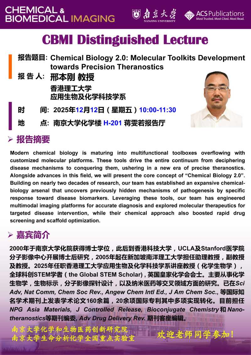 12月12日 邢本刚教授:Chemical Biology 2.0: Molecular Toolkits Development towards Precision Theranostics