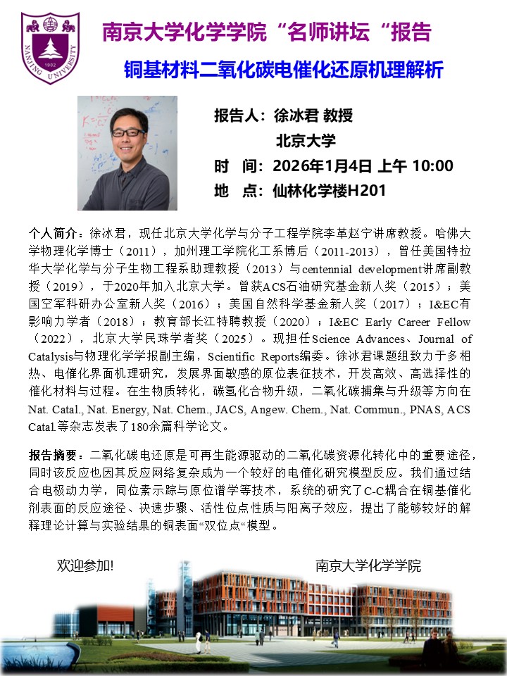 1月4日名师讲坛-徐冰君教授:铜基材料二氧化碳电催化还原机理解析
