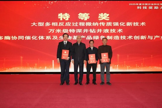 2025年12月24日,2025中国石油和化学工业联合会科技奖励大会在北京召开,大会隆重表彰了2025年度石油和化工行业科技创新的获奖单位和个人。公司张志炳团队完成的大型多相反应过程微纳传质强化新技术获得本年度唯一一个技术发明特等奖。
