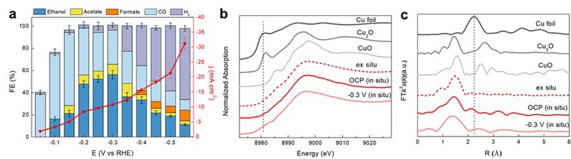 使用可再生电力将CO2电催化还原(CO2RR)为燃料/化学品是实现碳中和和可持续发展的重要途径。在CO2RR的C2+产物中,乙醇是一种多功能有机试剂,可用作高能量密度燃料,也是生产有机化学品和消毒剂的原料。铜基催化剂作为唯一能将CO2深度还原的催化剂引起了人们的广泛关注,但目前仍存在对单一产物选择性差、反应过电势大、活性位点结构不稳定、机理解释困难等问题。因此,开发高效稳定、结构明晰的铜基催化剂至关重要。