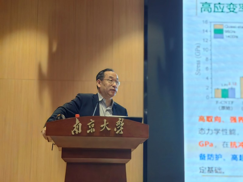报告中,张锦院士首先介绍了纤维领域的产业背景与开展烯碳纤维研究的初衷,并从国家战略需求角度说明轻质高强、高韧、功能、智能纤维国产化是下一代纤维发展的必由之路。然后简要介绍了烯碳原材料的定义及性质,从“架桥梁”、“性能传递”、“复合高效传递”三个问题出发,探究一系列高性能、结构功能一体化烯碳纤维的可控制备方法。为真正实现基础研究与产业化应用的转化,张锦院士介绍了其团队在烯碳纤维的批量制备技术及它在防弹、电磁防护及人工肌肉中的应用前景。在报告的最后,张锦院士还强调要重视基础研究中的原始创新,提出学科交叉融合及研究范式革新的美好愿景,并立足当下对烯碳纤维的发展进行总结与展望。张院士的报告鞭辟入里,“卤水点豆腐”等精彩纷呈的研究观点激发了与会人员的极大兴趣。在讨论环节中,公司师生踊跃提问,就烯碳纤维制备技术、研究前景及应用、未来科学研究范式等方面进行了深入交流。