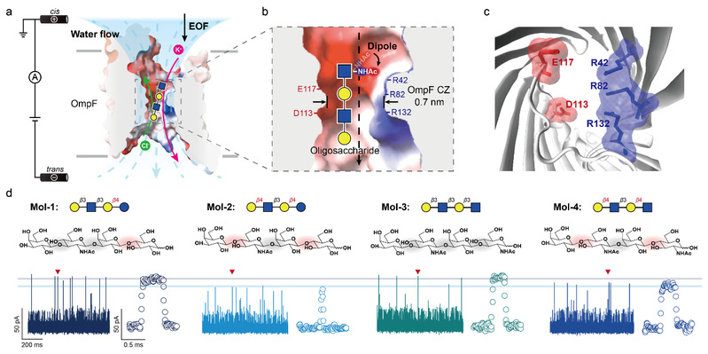图4 OmpF纳米孔道识别带有极性基团的寡糖异构体。