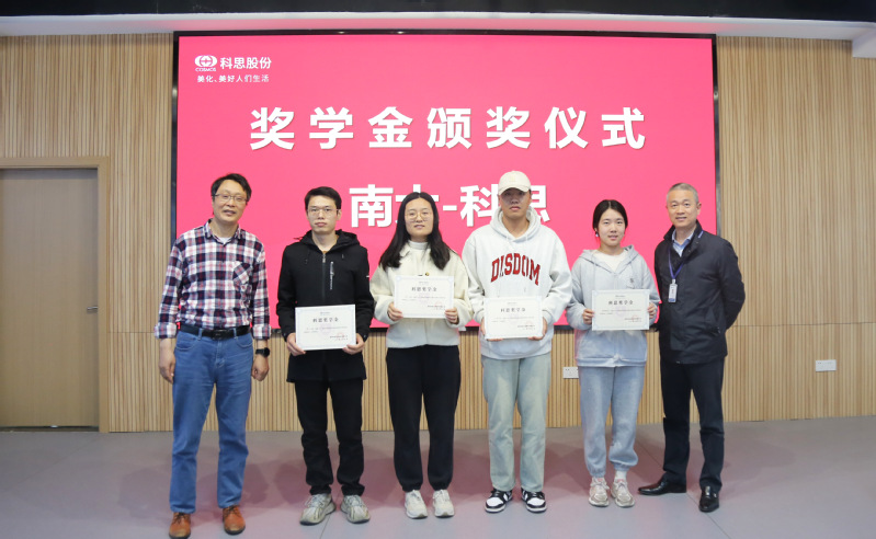 科思化学秉承“美化,美好人们生活”的企业文化,同样也在美化、美好自己员工的生活,在科思就职的南大优秀员工及公司领导向师生们介绍了科思的工作氛围、薪资待遇、招人标准与岗位需求等。之后双方举行了2022年度科思-南大奖学金颁发仪式,科思股份副总裁陶龙明、研究院经理何卫江为公司获得科思奖学金的同学颁发证书并合影留念。