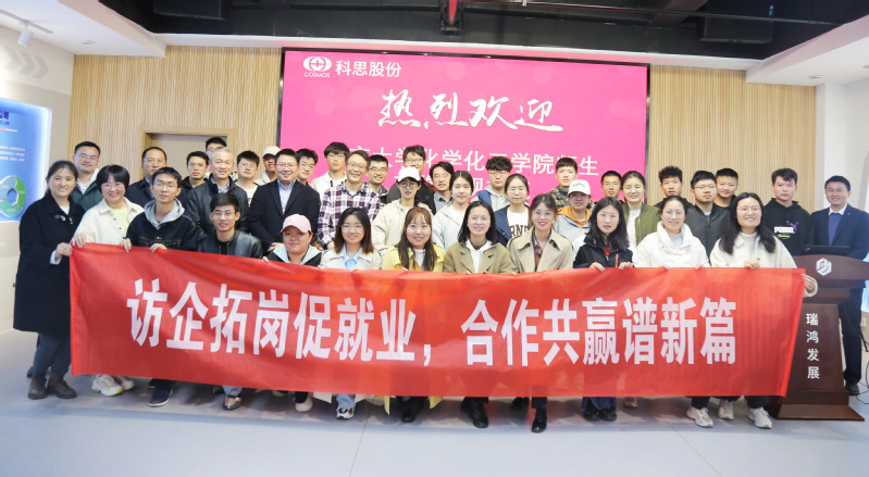 为全面深化院企合作,实现供需对接,征求企业对培养市场需求高层次人才的意见,拓展毕业生就业渠道与就业岗位,公司开展访企拓岗促就业专项系列行动。2023年4月25日,公司团委书记王一晴、团委副书记朱青、本科生辅导员魏志及各年级本硕博员工等30余人参观科思股份研究院,科思股份副总裁陶龙明及公司领导对公司师生的来访表示热烈欢迎。