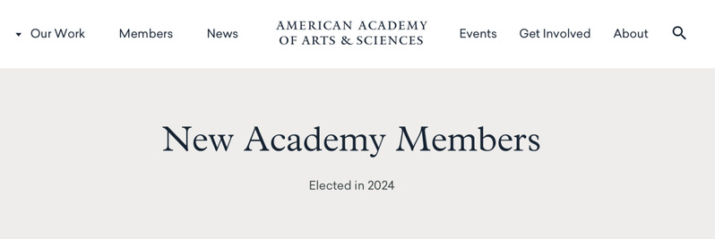 美国艺术与科学院成立于1780年,是美国历史最悠久和地位最高的荣誉学术团体之一,旨在表彰成就卓越的杰出学者,汇集人类各个领域的领导者来检验新思想,解决对国家和世界具有重要意义的问题,并共同努力,“培养可能会促进自由、独立和有道德人民的利益、荣誉、尊严和幸福的每一种艺术和科学 ”(美国艺术与科学院章程)。现任成员代表了当今各个领域和专业的创新思想家,其中包括 250多位诺贝尔奖和普利策奖获得者。现共有院士 4000 多名,外籍荣誉院士 600 多名。他们中有 250 名诺贝尔奖得主和 60 多位普利策奖获得者。