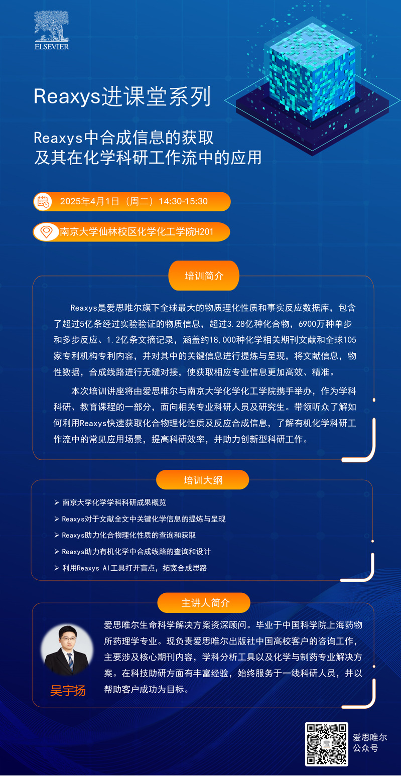4月1日 Reaxys进课堂:Reaxys中合成信息的获取及其在化学科研工作流中的应用