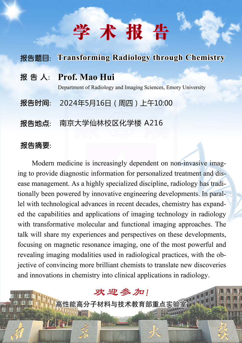 5月15日学术报告-Prof. Mao Hui:Transforming Radiology through Chemistry