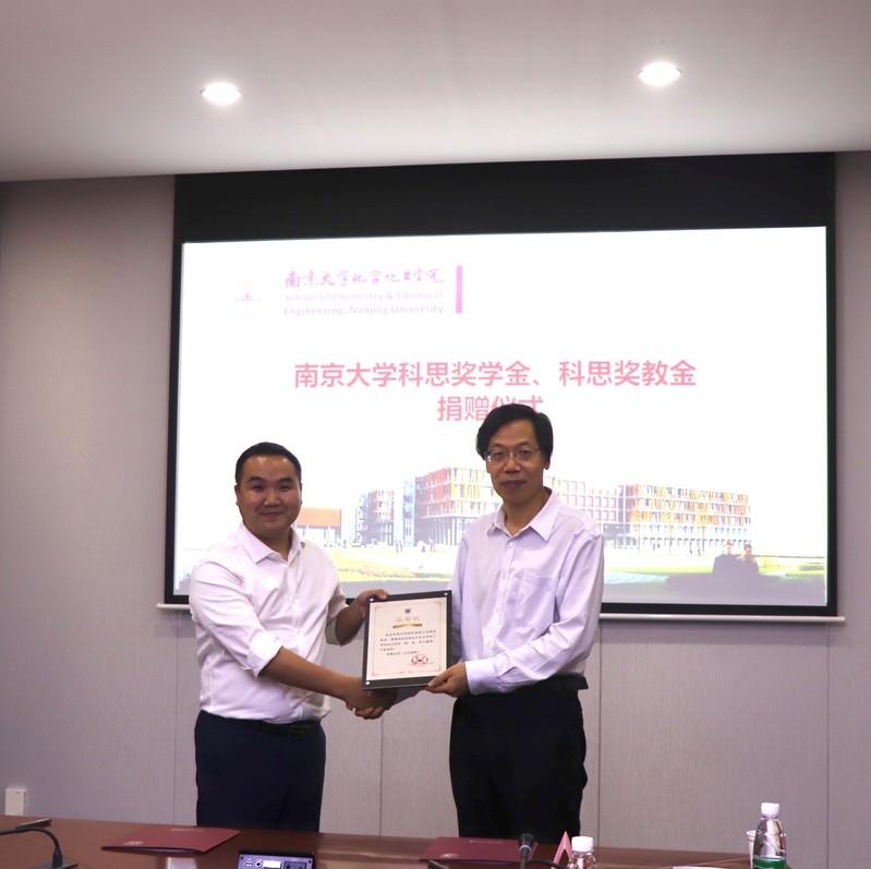 朱成建代表南大化院进行总结,他对科思的慷慨捐赠表达了由衷的感谢。他指出,科思公司不仅科研力量雄厚、人才储备充分、企业文化先进,而且集团领导有远见、有情怀,有高度的社会责任感,是一家令人尊敬的企业。科思集团强调的“科技创新”价值观与化学化工学院的发展理念不谋而合,并为我们的毕业生提供了良好的科技创新平台。在新的时代和机遇面前,学院将引导员工转变择业观、就业观,与企业加深科研项目、人才培养、就业实习等方面的合作,共同实现为国家战略发展做贡献的历史使命。