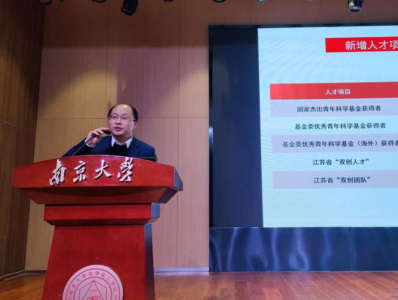 黎书华从队伍建设、平台建设和科学研究、教学和人才培养、学术交流、团队建设以及支撑保障和社会服务六个方面,介绍了2021年度学院行政工作的各项进展。他指出,过去的一年,学院新引进资深及青年学者数名,多位教师及团队在立德树人、科学研究方面取得突出成绩;人才培养工作成效显著,《“一基二核三功能”化学专业本科实验教学新体系的构建和实施》进入江苏省教学成果奖二等奖公示名单,各类课程和教材建设稳步推进;虽受到新冠疫情的影响,但学术交流活动仍旧开展的丰富多彩。但在取得成绩的同时,学院也注意到在具有影响力的大团队建设、大项目申请上仍有不足,院内公共经费开支也在逐年增加。这些问题都将学院的发展产生更大的挑战,需要公司党政及全体教职员工共同应对。