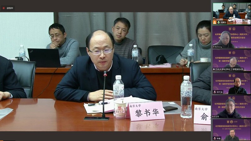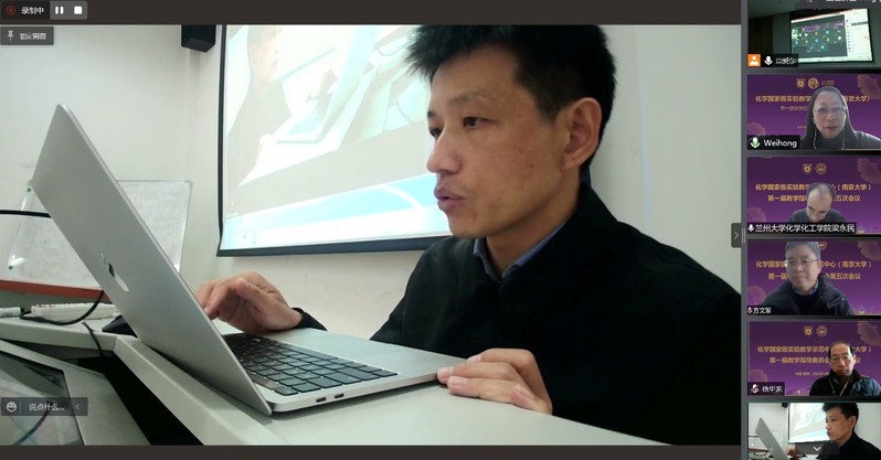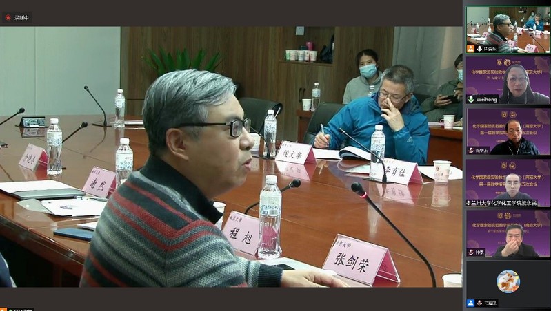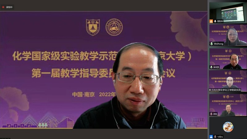 会议第二阶段由教学指导委员会主任梁永民教授主持,中心主任章文伟教授代表实验中心做“化学实验教学中心2021年度工作汇报”,淳远教授做“化学原理与测量课程汇报”,章文伟教授做“化学功能分子实验课程汇报”。