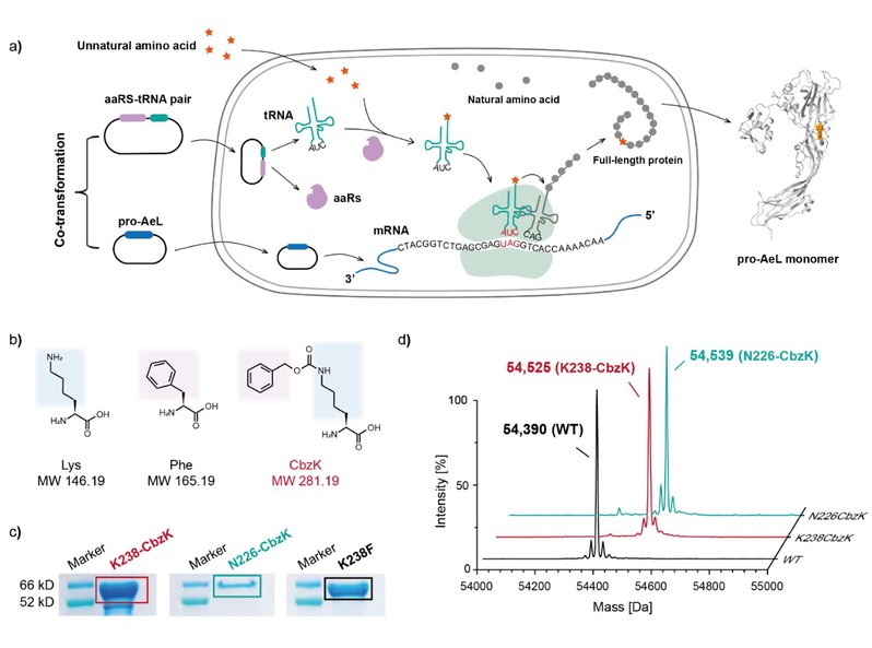 图2.非天然氨基酸编码的Aerolysin成孔蛋白高表达体系。