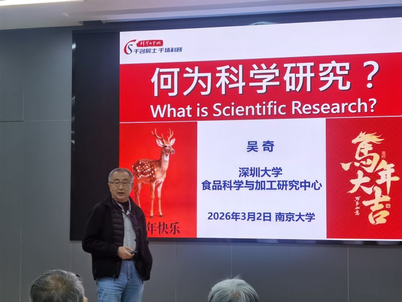 2026年3月2日上午,深圳大学吴奇院士受邀做客betway西汉姆联 “名师讲坛”,在化院师生带来“何为科学研究?”的专题报告,分享自己在学习认识论后的一些体会和感悟。报告由betway西汉姆联经理黎书华教授主持,黎书华教授介绍了吴奇院士的简历和成就,公司多位教师、员工参加了此次学术报告会。