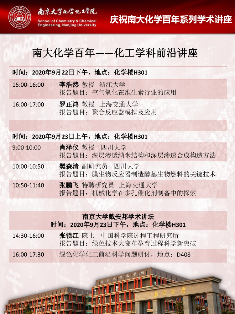 9月22日-23日庆祝南大化学百年系列学术论坛-化工学科前沿讲座