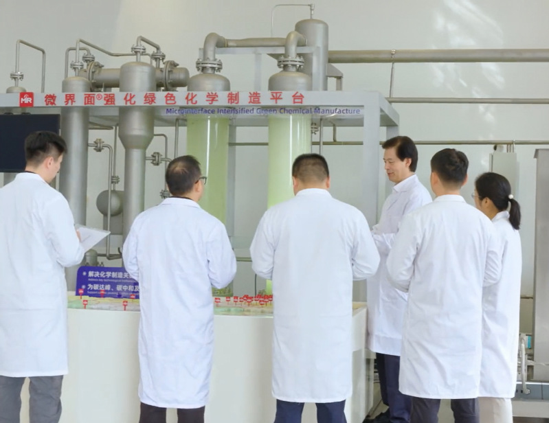 正在带领团队进行技术迭代的研究院负责人、张志炳介绍,这项技术的奥秘在于,将化学制造过程中气体、液体、固体之间分子传递的“界面”放大,相当于在不同物质之间搭建了一条超高速公路,将物质和能量的传输效率提高数百倍,解决化学品生产中高能耗、高排放、低效率、低效益等普遍性问题。