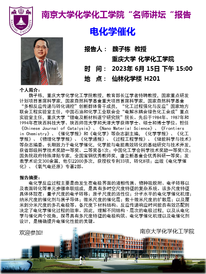 6月15日名师讲坛-魏子栋教授:电化学催化