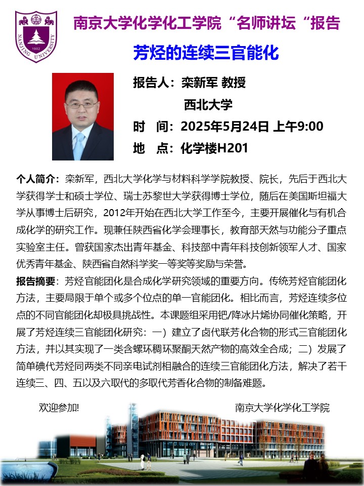 5月24日名师讲坛-栾新军教授:芳烃的连续三官能化