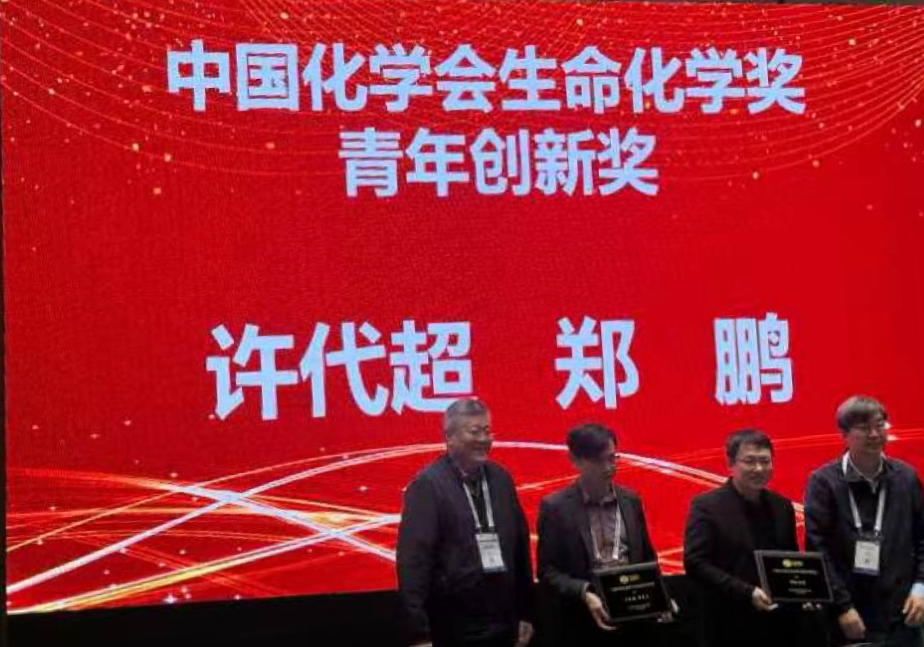 中国化学会生命化学奖青年创新奖颁奖现场,右二为郑鹏教授