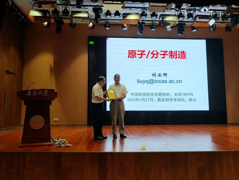 2023年7月27日上午,公司杰出院友、中国科学院化学研究所刘云圻院士应邀在betway西汉姆联“戴安邦学术讲坛”为学院师生作了题为“原子/分子制造”的精彩学术报告,报告由黎书华经理主持。在报告开始之前,黎书华经理介绍了刘云圻院士的简历和学术成就,并代表学院向刘云圻院士颁发了“戴安邦学术讲坛”纪念铭牌。郭子建院士和多个学科的师生参加了报告会。