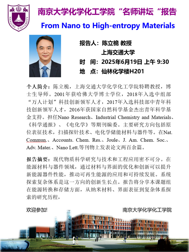 6月19日名师讲坛-陈立桅教授:From Nano to High-entropy Materials