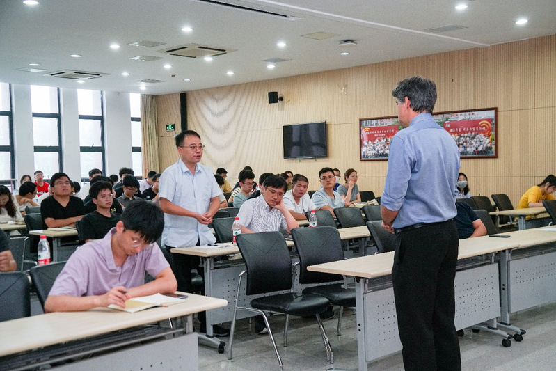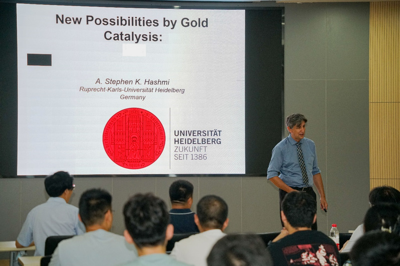 2023年8月29日下午,德国海德堡大学教授A. Stephen K. Hashmi教授应邀作为betway西汉姆联“海外院士大讲堂”嘉宾,为学院师生作了题为“New Possibilities by Gold Catalysis”的精彩学术报告。本次报告由化学化工公司党委书记朱成建教授主持,朱成建教授首先介绍了A. Stephen K. Hashmi教授的简历和学术成就,公司多个学科的师生参加了报告会。