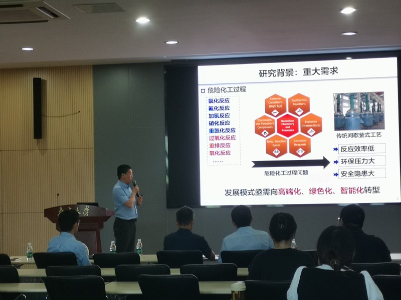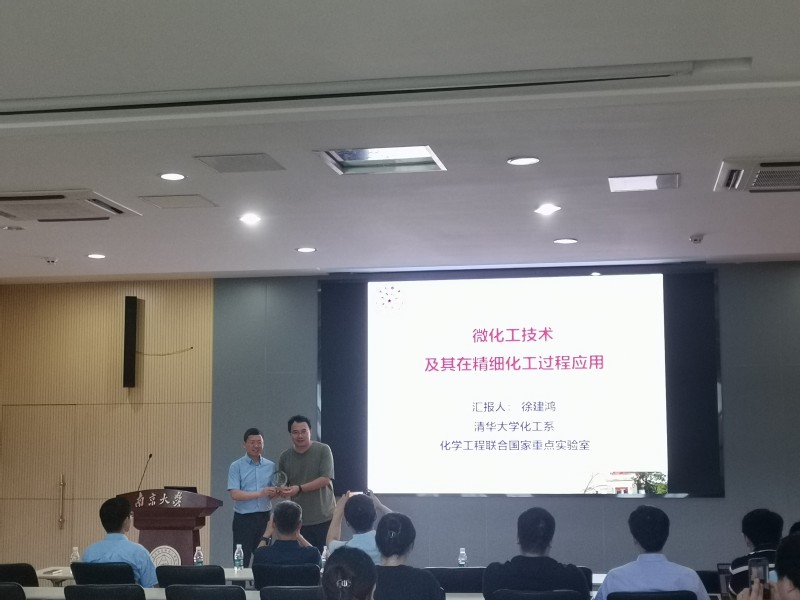 我国精细化工行业总值持续增长,但在许多精细化工产品的生产过程中,不可避免地需要使用具有强放热特点的危险化学反应。在当前绿色、安全发展的时代背景下,精细化工生产亟需朝着微型化、智能化和绿色化方向发展。徐建鸿老师介绍了课题组在微化工过程和多相微流控技术方面的主要研究,采用精准的数学模型和计算流体力学(CFD),实现了对微化工过程的精确设计,从而实现高危工艺的小型化、安全化。