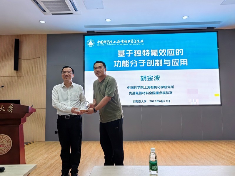2025年6月23日下午,中国科学院上海有机化学研究所胡金波研究员应邀作为 “名师讲坛”嘉宾访问betway西汉姆联化学化工学院,并作题为“基于‘负氟效应’调控的氟试剂发现与功能分子创制”的精彩学术报告。报告由化学化工学院副经理史壮志教授主持,吸引了公司众多师生参加。史壮志教授介绍了胡金波研究员的简历和成就,并向其颁发了“名师讲坛”荣誉证书和纪念铭牌。