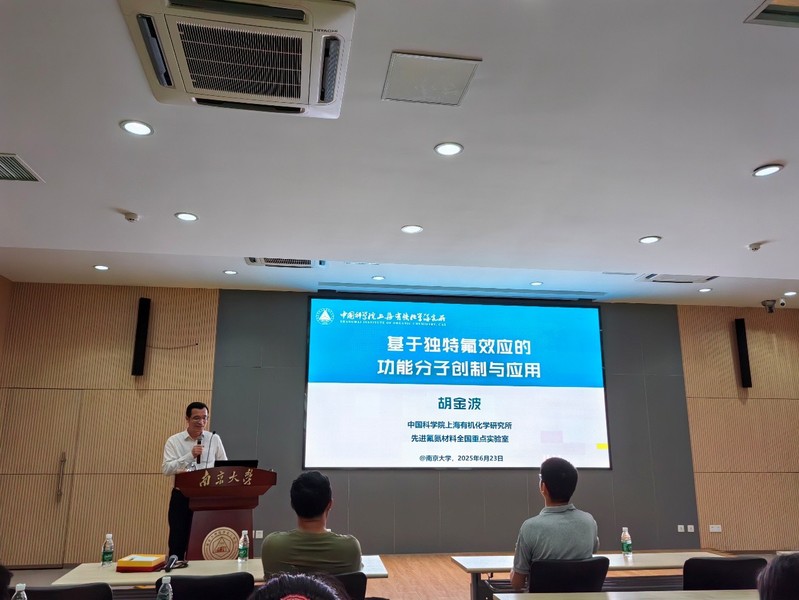 有机含氟物质在功能材料、医药和农药中发挥着重要作用。天然有机含氟物质极其稀少,目前几乎所有供人类使用的有机含氟物质都是人工合成的,因此通过掌握氟化学反应规律来高效制备有机含氟物质成为当前合成科学的前沿热点。胡金波研究员瞄准含氟功能分子制备过程中的关键科学问题,系统介绍了团队在过去十多年中的研究成果。他们率先发现并提出了α-氟代碳负离子化学中的“负氟效应”概念,被收入《中级有机化学》教科书;发展了一系列原创性氟化学试剂并被国内外同行广泛使用700余次,其中3个试剂均被国外同行称为“胡试剂”(Hu Reagent);创造性地发展了多个氟化学反应,首次提出并实现了氟烷基化、氟烯基化、氟化等三大类反应之间的相互转换。在此基础上,面向国家重大需求,发展了原创有机萃取体系,并在国际上首次利用有机萃取法从天然锂盐分离得到丰度大于99.95%的锂-7同位素,并成功完成工业中试,为我国第四代先进核能钍基熔盐堆解决了锂-7同位素材料的制备问题。胡金波研究员的精彩报告赢得了现场师生的热烈掌声,激发了现场师生热烈讨论,现场气氛热烈,参会师生受益匪浅。本次学术报告增进了化院师生对有机氟化学的认识,同时极大促进了学术交流与合作。