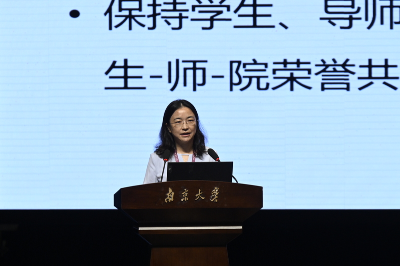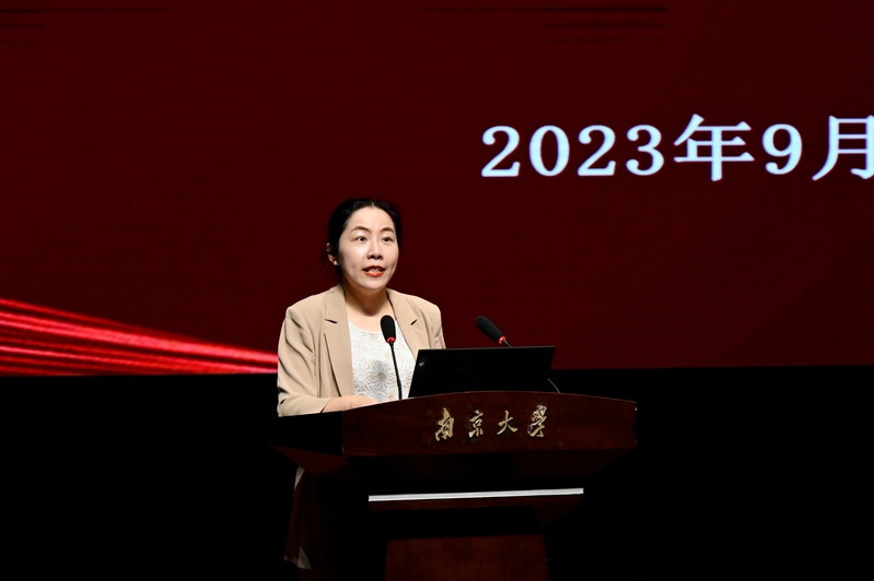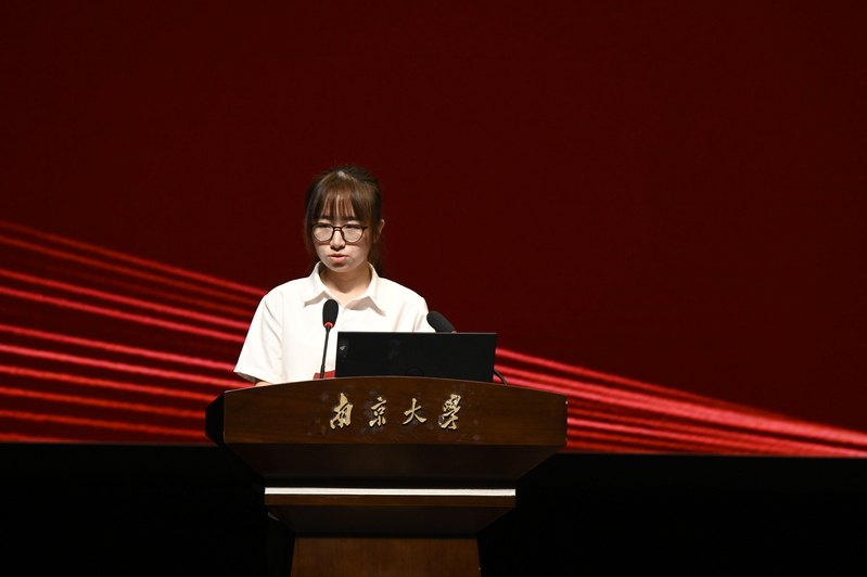 2023级直博生鲍雨妍作为新生代表发言,她回顾了自己在南大的四年本科时光,感念南大化院浓厚的学术氛围、严谨的治学传统和踏实的工作作风。她表达了积极进取,在学术研究上不断追求卓越的决心;表示将继续勇于实践,不断超越自我,为国家科技创新和发展做出贡献。