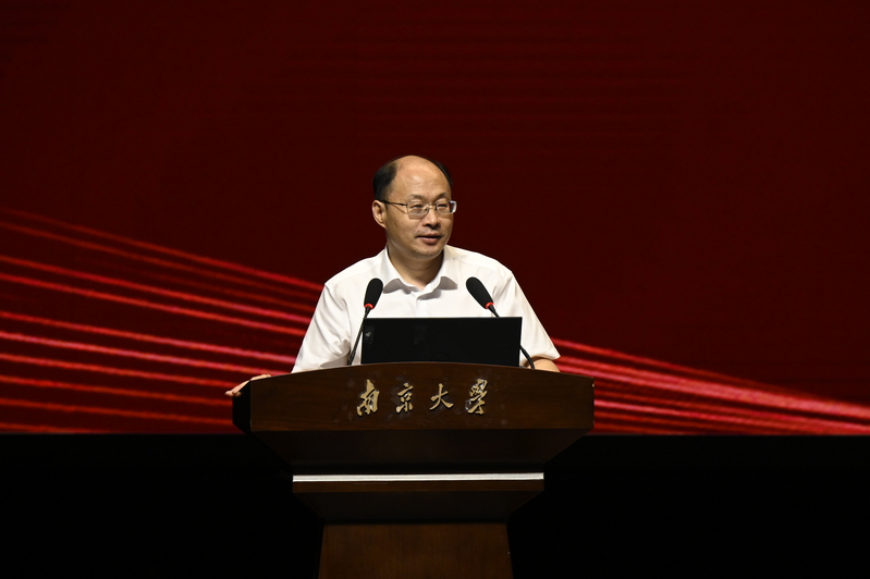 黎书华代表学院欢迎2023级研究生新生。他对学院在人才培养、科学研究、社会服务、研究生课余生活等方面做了整体介绍。他希望,同学们能尽早发现自己的特长,找到适合自己的人生规划,要全方位锻炼和培养自己,除科研能力外,还要培养表达能力、人际交往能力、管理能力和组织协调能力,把自己的潜能发挥到极致,对国家和人民作出最大的贡献;在适合自己的专业领域内,勇于突破学科壁垒,提升学科交叉能力,从而推动学科的进步,更好地解决复杂问题,学会与他人交流合作,拓宽认知边界。他再次感谢同学们选择南大化院,并表示,学院将尽可能创造条件帮助同学们更好地成长和发展,谱写人生美好华章。