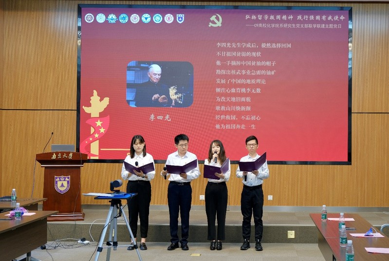 C9高校研究生党员代表围绕学习习总书记重要回信精神,结合各自学校和院系办学特色及支部在思想引领、科研育人、弘扬老一辈科学家精神等方面特色做法进行了分享。北京大学黄可闻同学讲述了张青莲院士、邢其毅院士、徐光宪院士等老一辈科学家的事例,留学归来的北大化学青年学者们秉承着“立足基础研究、面向国家目标、发展前沿学科”的精神,不负党和人民的期望,为实现中华民族伟大复兴的中国梦贡献力量!
