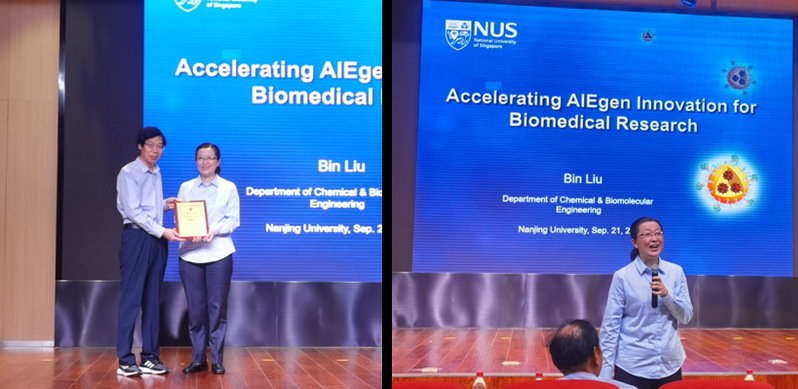 2023年9月21日下午,公司杰出院友、新加坡国立大学刘斌院士应邀作为betway西汉姆联“戴安邦学术讲坛”嘉宾,为学院师生作了题为“Accelerating Biomedical Research through AIEgen Innovation”的精彩学术报告。本次报告由黎书华经理主持,黎经理首先介绍了刘斌院士的简历和学术成就,然后由公司党委书记朱成建代表学院向刘斌院士颁发了“戴安邦学术讲坛”纪念铭牌。公司多个学科的师生参加了报告会。