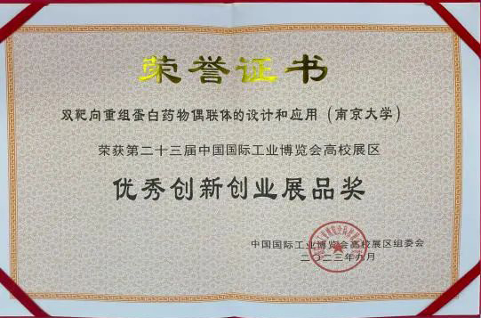 9月23日,第23届中国国际工业博览会圆满闭幕,闭幕式上举行了高校展区颁奖仪式。公司蒋锡群教授团队的“双靶向重组蛋白药物偶联体的设计和应用”荣获高校展区优秀创新创业展品奖。