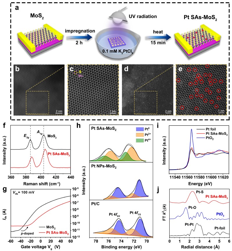图1.单原子催化剂的合成与表征(以Pt SAs-MoS2为例)