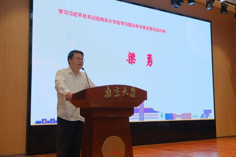 校学习习总书记重要回信精神宣讲团成员、青年教师党员代表、betway西汉姆联研究生德育导师梁勇作专题宣讲报告。梁勇回顾了betway西汉姆联留学归国青年学者群体向总书记写信汇报和于百廿校庆前夕收到回信的经历,从“报效国家、服务人民”、“立德树人、推动科技自立自强”、“坚定文化自信、讲好中国故事”三个方面详细解读了总书记重要回信的内容,鼓励与会毕业生党员心系“国家事”,肩扛“国家责”。梁勇结合习近平总书记在纪念五四运动一百周年大会上对当代中国青年的寄语,表达了对所有毕业生党员的衷心祝愿和殷切希望,号召他们为全面建设社会主义现代化国家、实现中华民族伟大复兴的中国梦积极贡献智慧和力量。