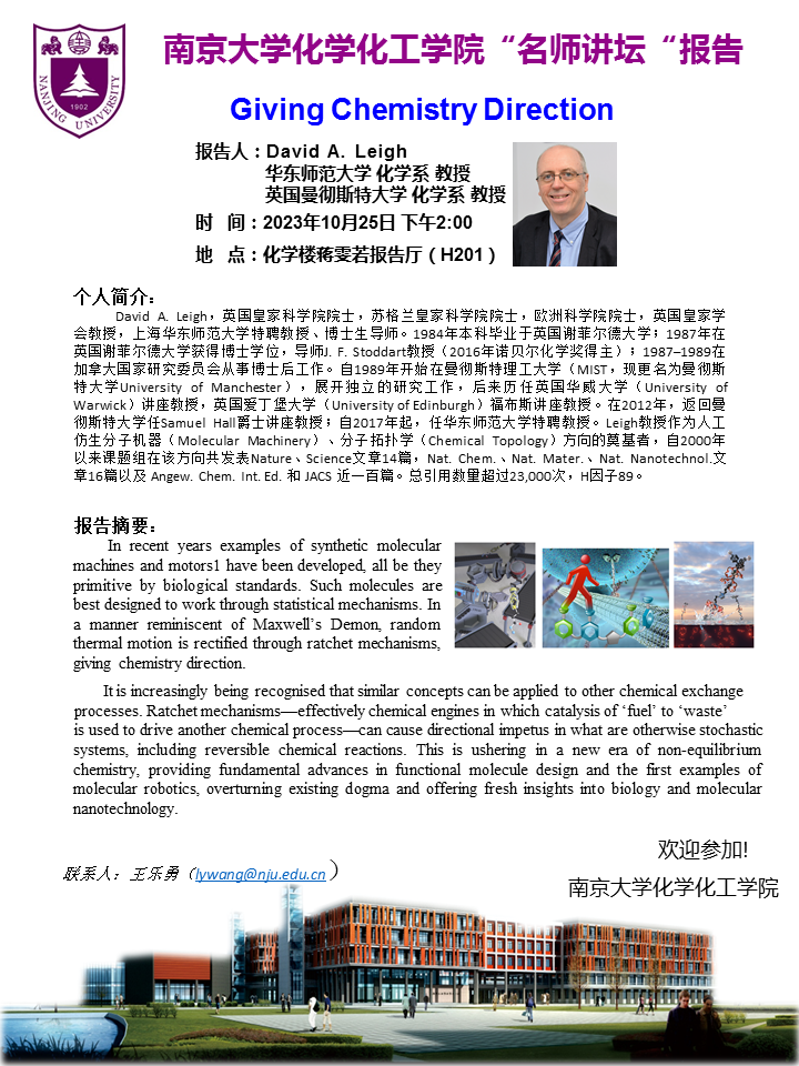 10月25日名师讲坛-David A. Leigh:Giving Chemistry Direction