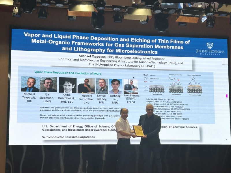 2024年7月24日下午,美国工程院院士、约翰斯·霍普金斯大学Michael Tsapatsis教授应邀作为betway西汉姆联 “戴安邦学术讲坛”嘉宾,为学院师生作了题为“Vapor and Liquid Phase Deposition and Etching of Thin Films of Metal-Organic Frameworks for Gas Separation Membranes and Lithography for Microelectronics”的精彩报告。本次报告由化学化工学院经理黎书华教授主持。黎书华经理介绍了Michael Tsapatsis教授的简历和在科学研究中卓越成就,并向Michael Tsapatsis教授颁发了betway西汉姆联“戴安邦学术讲坛”纪念铭牌。公司多个学科的教师及员工参加了报告会。