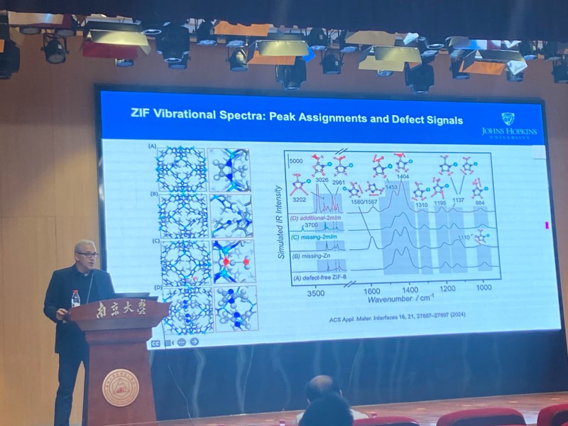 金属-有机框架(MOFs)因其可调的渗透性能而具有成为高效气体分离膜的潜力,尽管在高选择性MOF膜方面已经取得了很大进展,但可靠且可扩展大规模高质量薄膜制备仍然是一个挑战。Michael Tsapatsis教授首先介绍了基于气相处理的“配体诱导选择性渗透法”制备ZIF分离膜,通过原子层沉积法在多孔氧化铝载体上沉积氧化锌,经过2-甲基咪唑配体蒸汽处理,使其部分转变成为ZIF-8,结果发现丙烯通量和丙烯/丙烷选择性都大幅提高并且表现出稳定的性能。这种简便的全气相ZIF分离膜合成方法重复性佳,易于大规模生产,环境友好且成本低,具有广阔的应用前景。Michael Tsapatsis教授还介绍了基于电子束、X-射线和等离子体诱导修饰MOFs薄膜的最近研究工作进展,这些方法建立了一种新的材料处理范式,并在微电子器件制造中具有新的潜在应用。