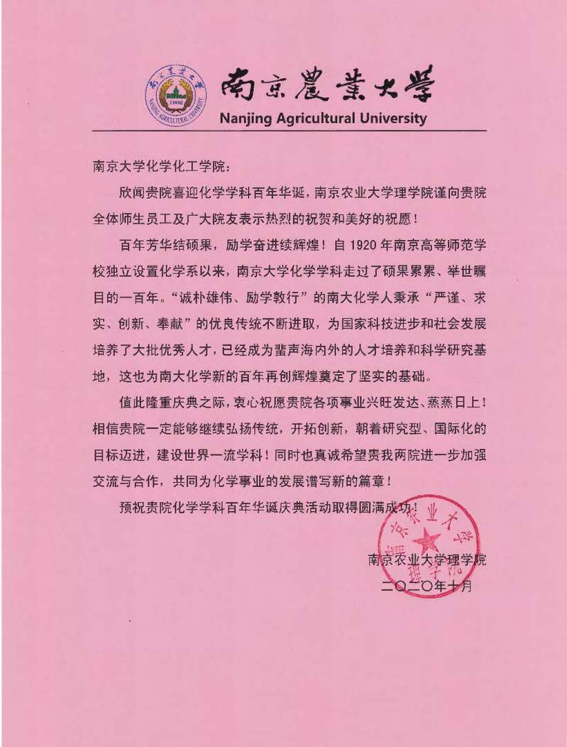 南京农业大学理学院贺信