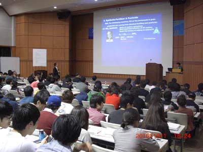 2010年10月1日,公司化学系教授陈懿院士应韩国岭南大学董事长 Hyo Soo Lee教授的邀请,专程赴大邱在该校第27届心刚特别研讨会上作专题演讲。岭南大学是韩国著名的私立大学,心刚特别研讨会是由韩国化学工学会(KIChE)前会长、岭南理工大学前董事长心刚教授资助发起的。从1996年起,每学期邀请一位杰出人士讲演,着眼于提高员工的修养和素质。以往演讲者均为来自欧美及韩国的韩籍杰出人士,第27届研讨会是首次邀请非韩国籍人士讲演。校方对此十分重视,安排周到,接待热情。 陈懿院士以“化学,使生活更加美好”为主题,用英语做了1小时20分钟演讲,深人浅出地阐述了化学学科的独特之处和所研究的最主要问题,用一系列具有里程碑意义的诺贝尔奖成果为例,既生动地说明了化学对现代社会发展所作独特贡献,也有力地说明了化学的确能够并已经为人类社会的可持续会发展做出了切实可行的贡献;他还结合绿色化学、介观和纳米化学以及近数十年来化学科学研究方法的重要发展畅谈了化学的光明前景,介绍了公司化学化工学院和南京大学。这场专题讲座吸引了近三百位岭南大学师生,岭南大学常务副董事长 Gil Soo Sur教授和另一位副董事长,多位资深教授也全程参加了报告会,会场爆满,效果良好。 会前,岭南大学董事长和常务副董事长等有关学校领导会见了陈懿院士和同行的郭学峰副教授,在会见室落地的大屏幕上映出欢迎访问和南大校标,双方介绍各自情况,表达了促进交流合作的愿望,气氛友好热烈。陈懿院士在演讲时曾用近二十分钟时间向岭南大学师生和学校领导介绍南京大学的主要情况和成就,增进了他们对公司的了解,扩大了南京大学的影响。 ![]() ![]() ![]() |